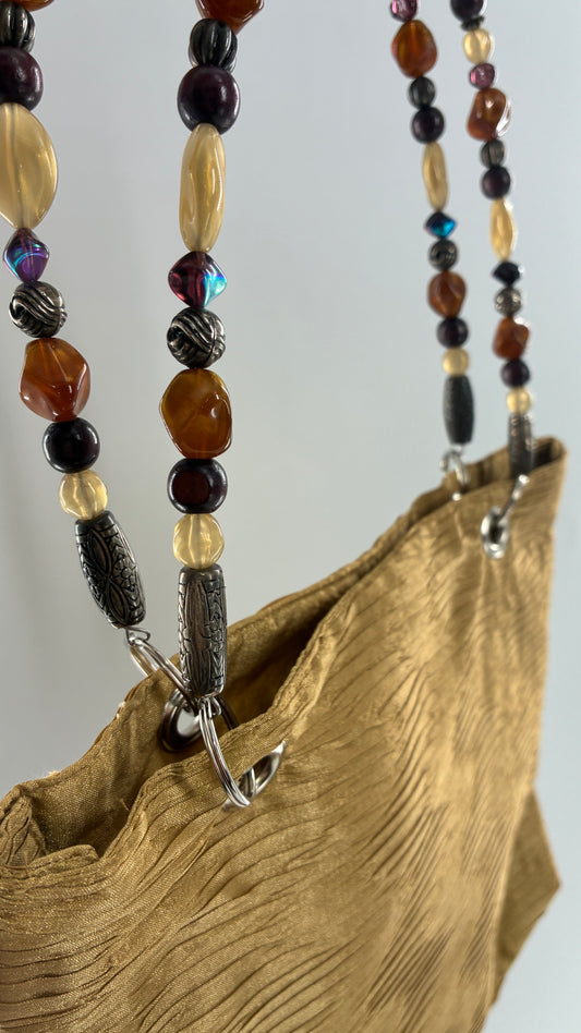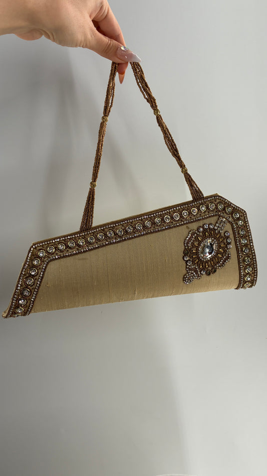 Vintage 1990s Asymmetric Gold Purse with Beading and Rhinestone Detailing