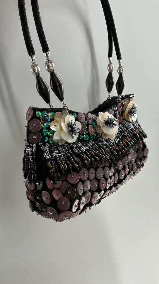 Vintage Embellished Purse with Sequins, Beading, Shells, and Florals
