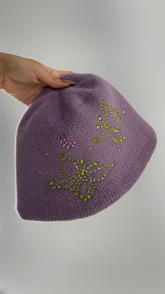 Urban Outfitters Lavender/Lilac Purple Knit Bucket Hat with Rhinestone Butterfly Details