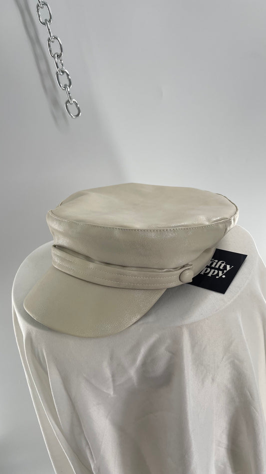Vintage Tan Knit Slouchy Newsboy Cap Beanie with Brim