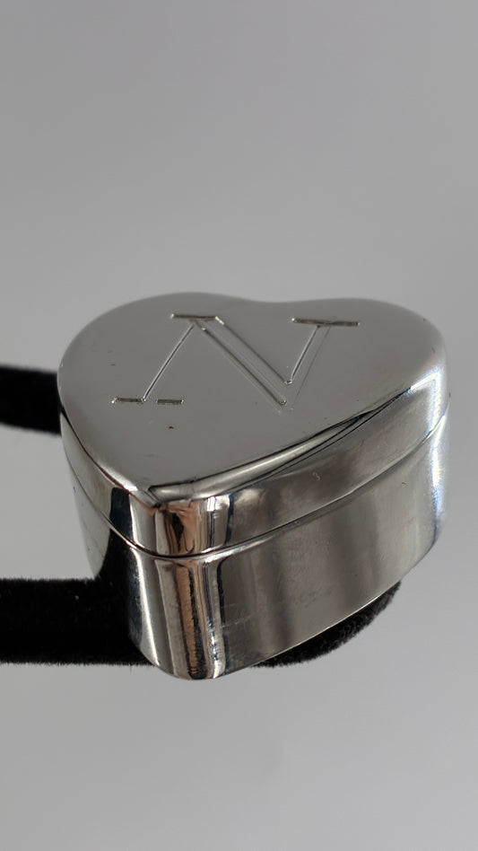 Vintage Mongram “N” Engraved Heart Shaped Silver Ring Box
