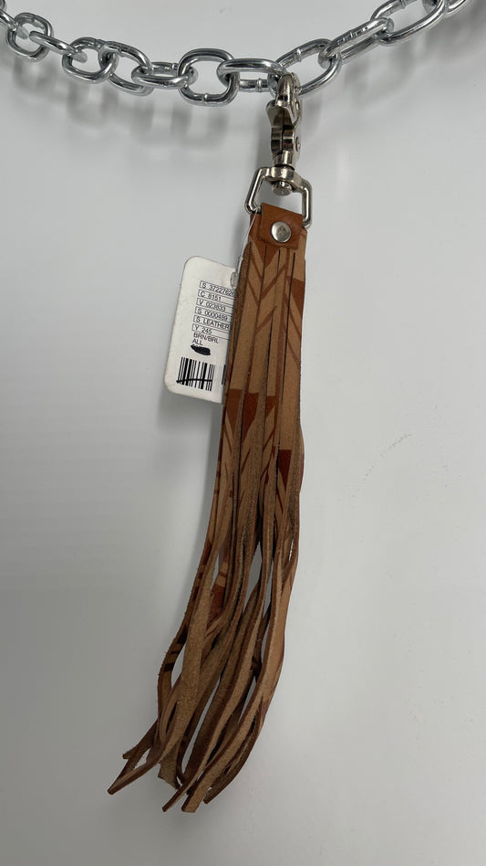 Free People Patterned Leather Tassel Keychain Ring with Tags Attached