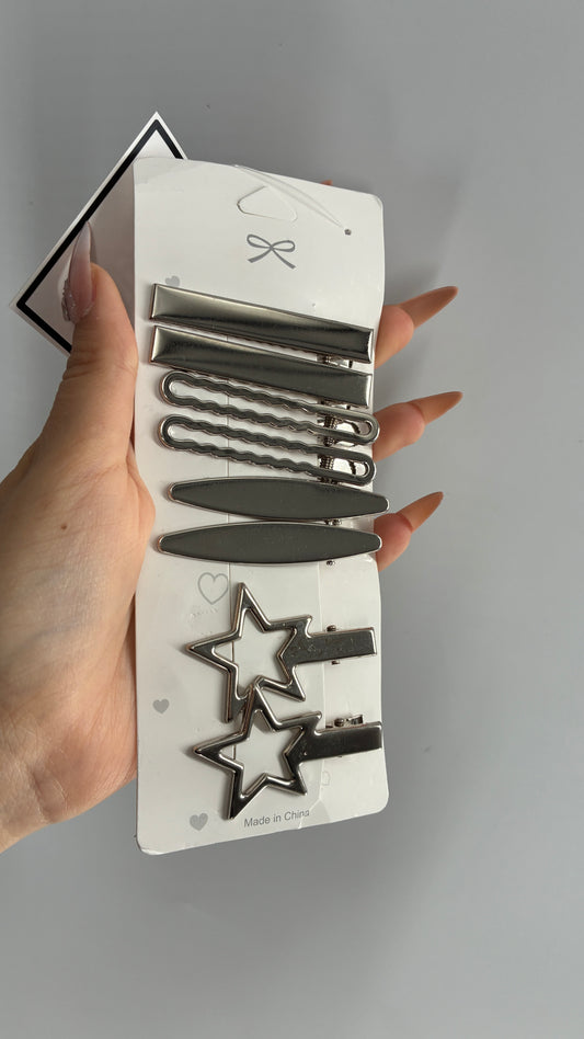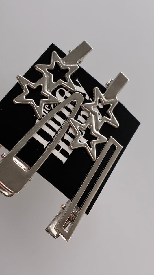 Silver Metal Hair Beret Clip Set
