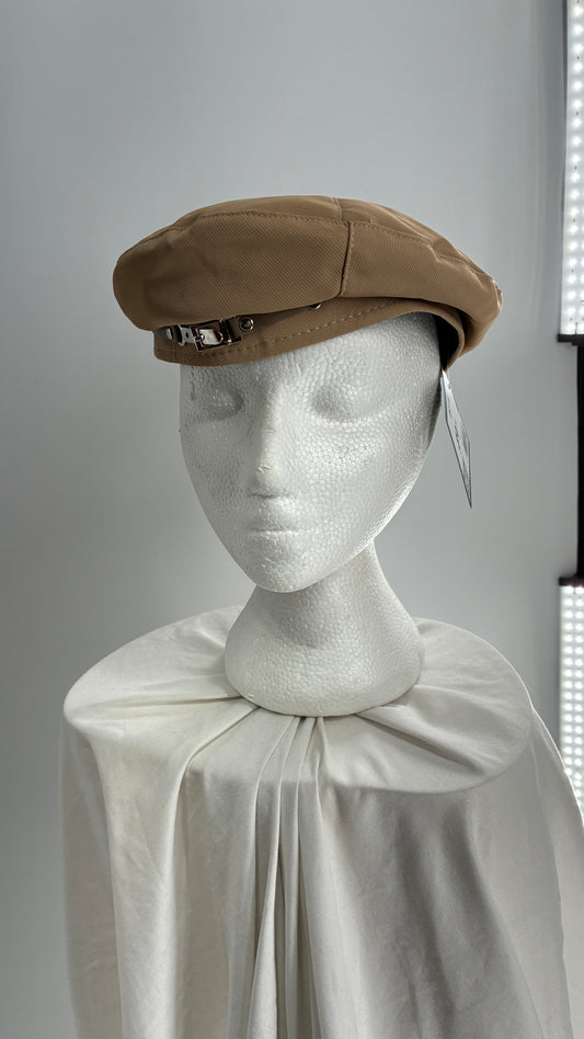 Tan Beret with Vegan Leather Strap and Silver Metal Hardware