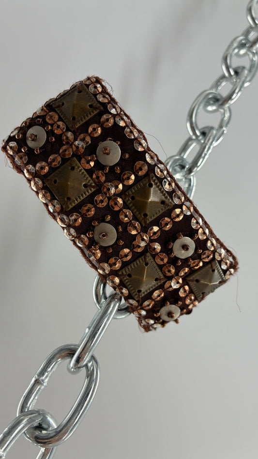 Vintage Studded and Sequined Brown Hair Beret