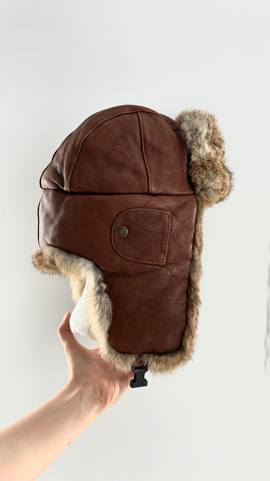 Vintage MAD BOMBER Leather and Rabbit Fur Bomber Style Trapper Hat