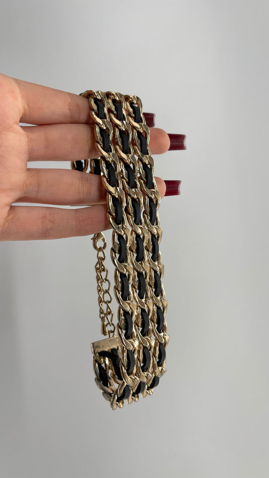 Free People Black Leather Braided Choker with Gold Metal Hardware