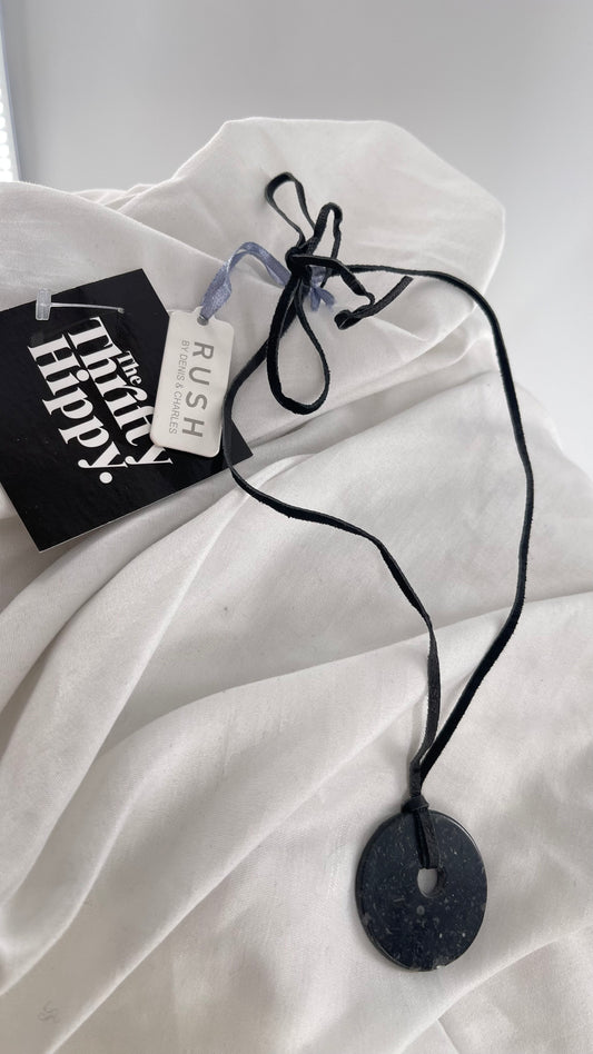 Deadstock Vintage Black Circular Stone Pendant Necklace Adjustable Length