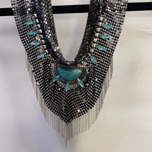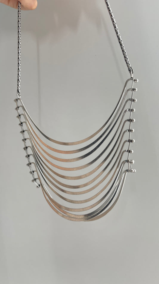 Lucky Brand Silver Metal Abstract Bracketed Layered Necklace with Tags Attached