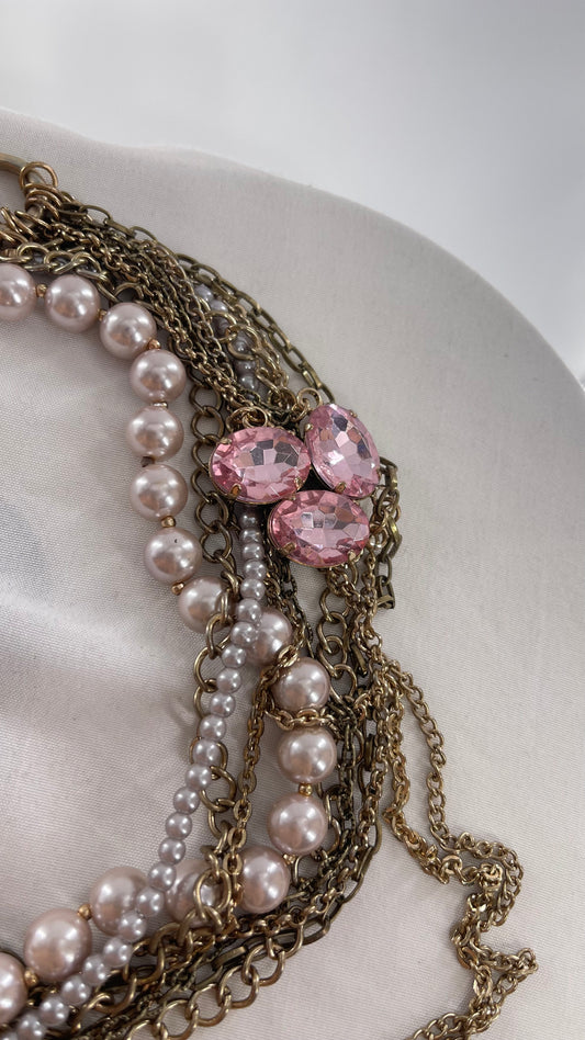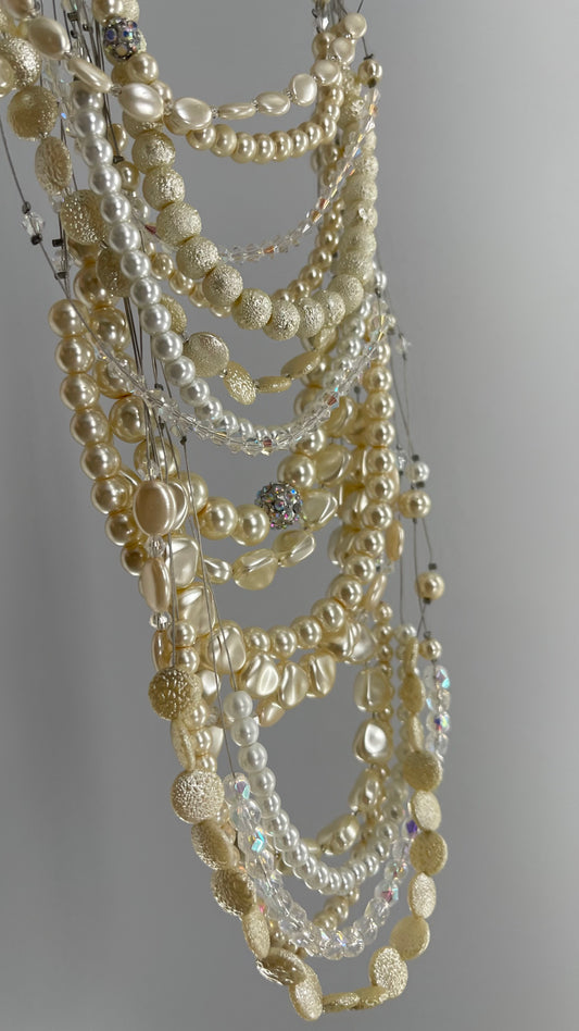 Vintage Handmade Exaggerated Multi Layer Pearl, Beaded Statement Necklace for Plunging Necklines