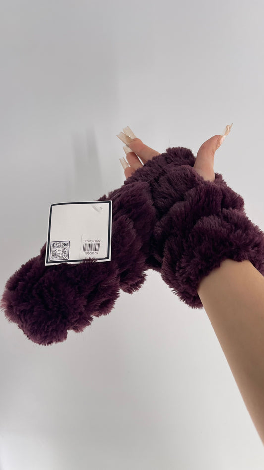 Free People Faux Fur Purple Bubble Fingerless Gloves