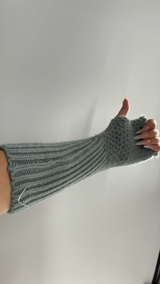 Free People Distressed Grey Blue Distressed Knit Fingerless Arm Warmer Gloves