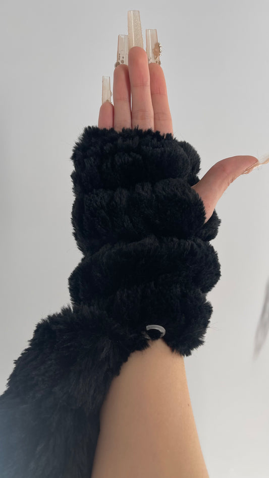 Free People Faux Fur Black Bubble Fingerless Gloves