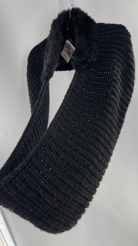 Comma Black Knit Infinity Scarf with Fur Trim Collar and Tags Attached