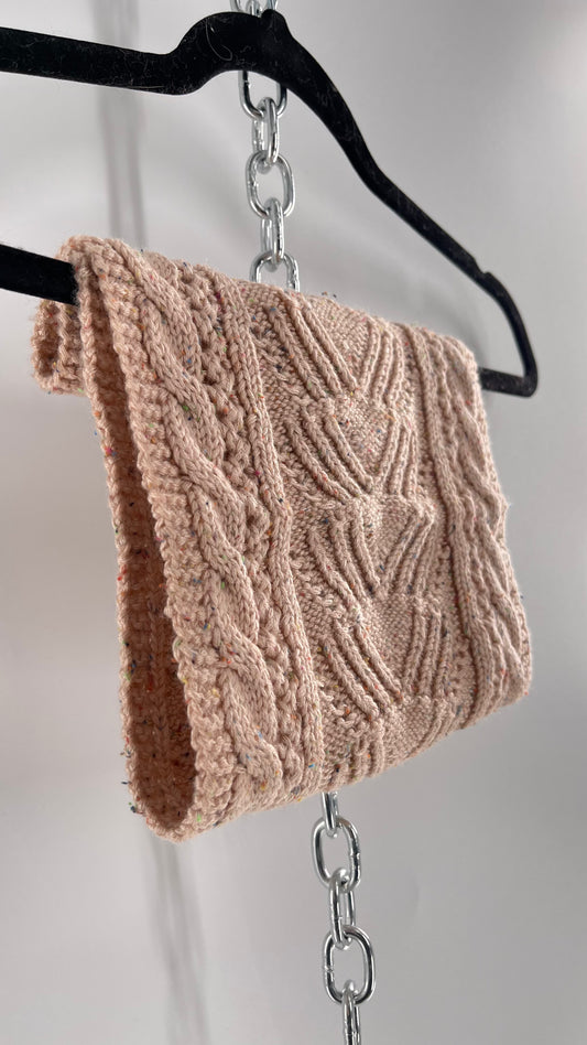 Light Pink Knit Infinity Scarf with Confetti Colorful Specks