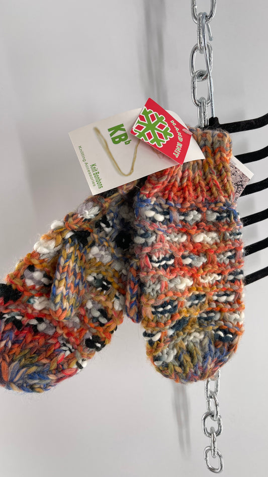 Knit Bonbons Handmade Mixed Yarn Colorful Knit Mittens with Tags Attached
