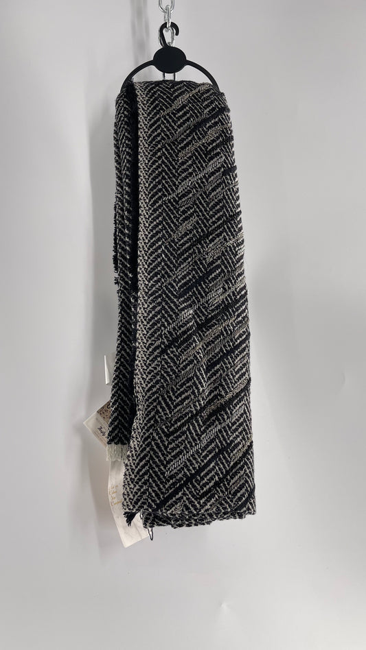 Anthropologie Pétanu Black and White 50% Cashmere 50% Silk Beaded Embellished Scarf with Tags Attached