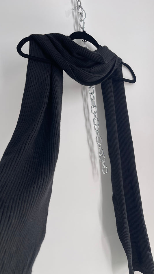 Beige Knit Skinny Scarf Ultra Long with Tassels
