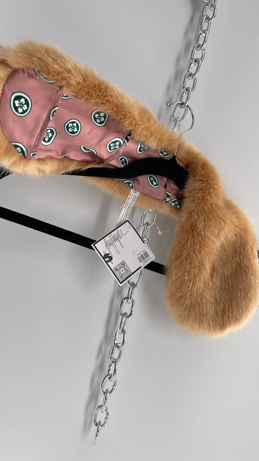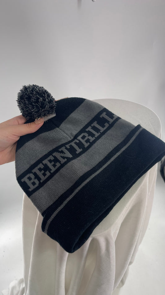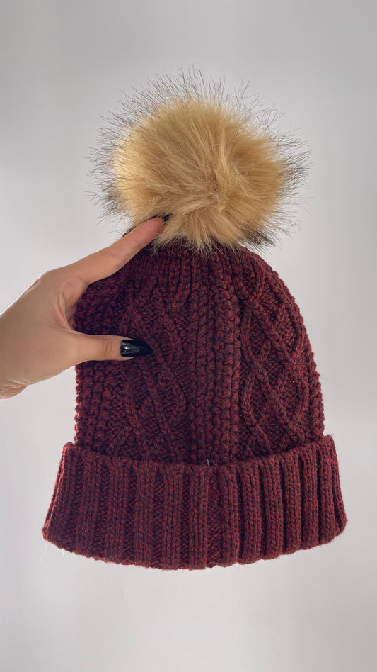 Urban Outfitters Burgundy Knit Beanie with Tan Faux Fur Pom
