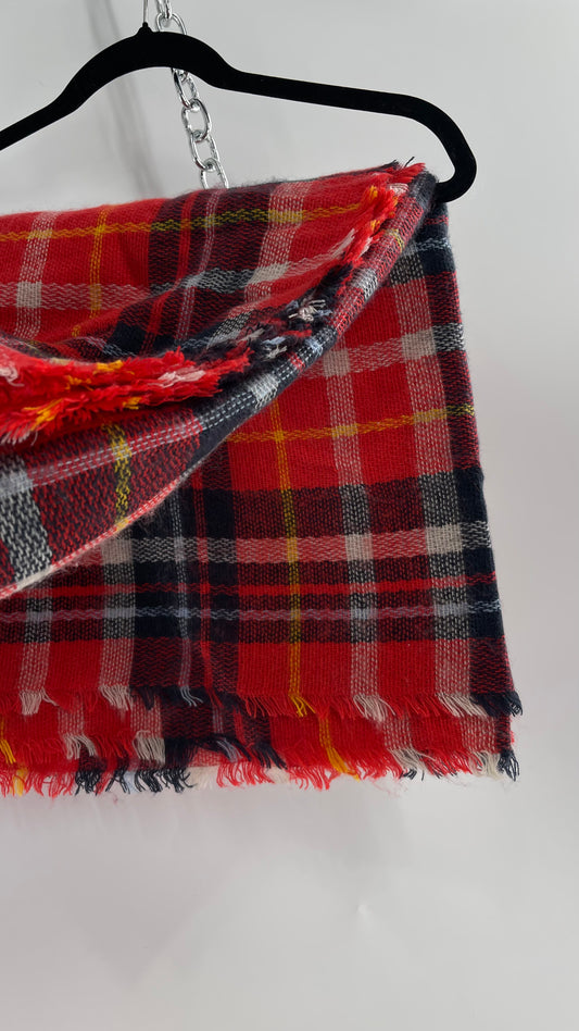 Brigitte Plaid Red Navy Puffer Quilted Scarf