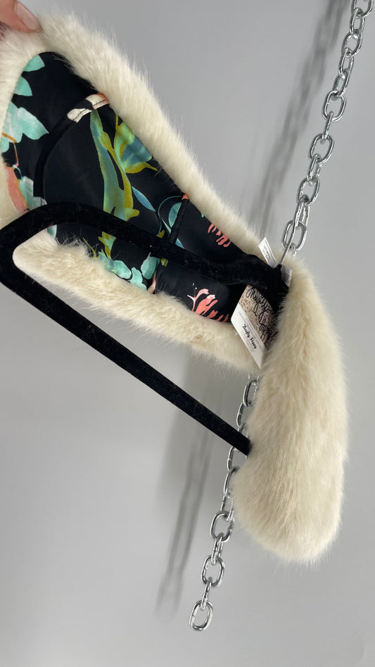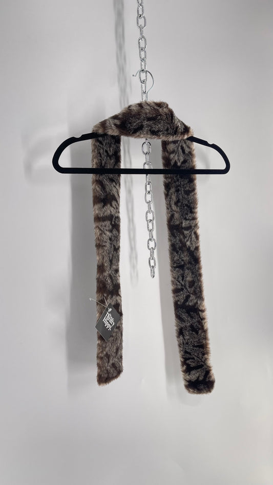 Vintage Fuzzy Furry Skinny Scarf Gray/Brown