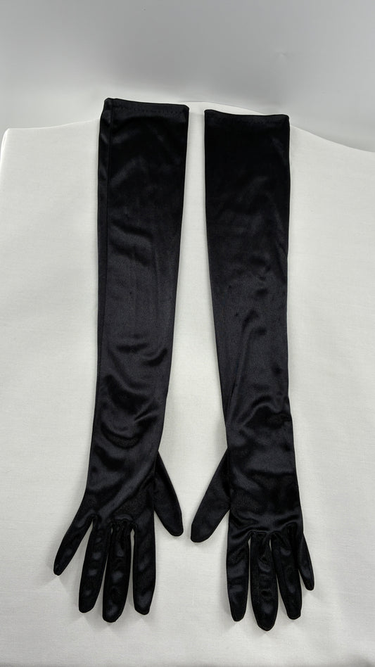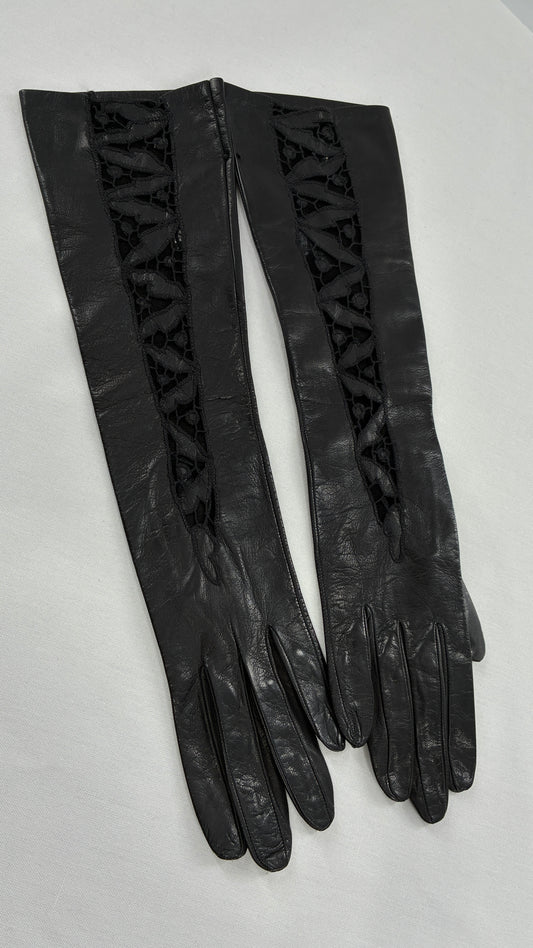 Deadstock Vintage Black Soft Leather Gloves with Lace Detail