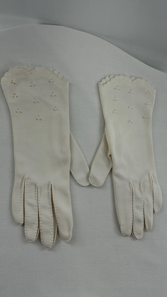 Vintage 1940s Handmade Off White Short Gloves with Scalloped Wrist