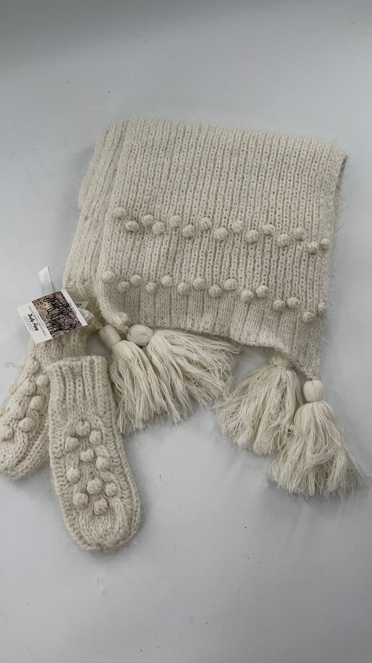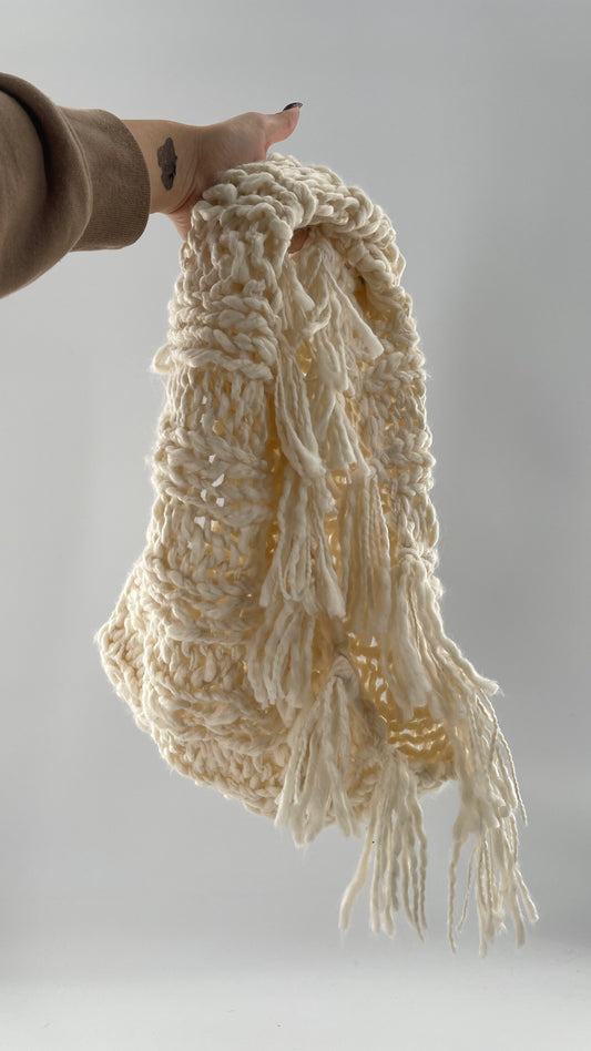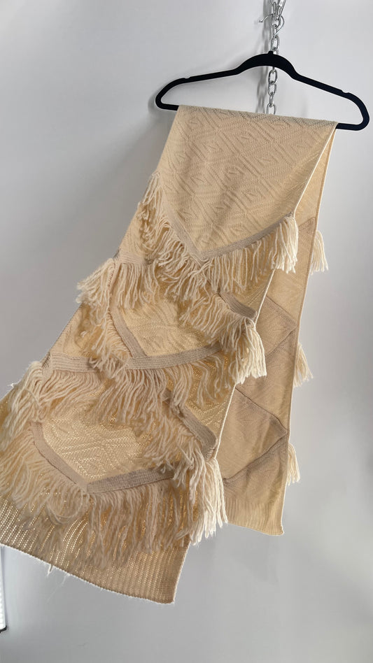 Urban Outfitters Ivory Off White Knit Scarf with Fringe and Argyle Design