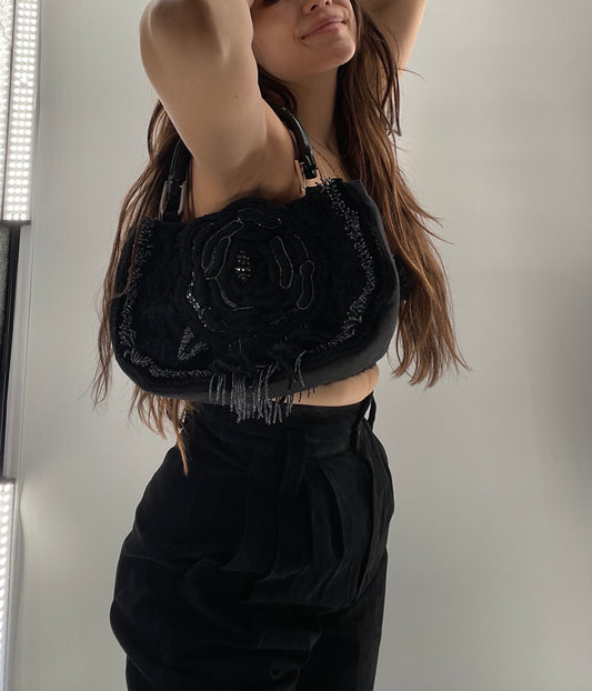 Coach Vintage Fur Trim Bag with Quilted Logo Pattern
