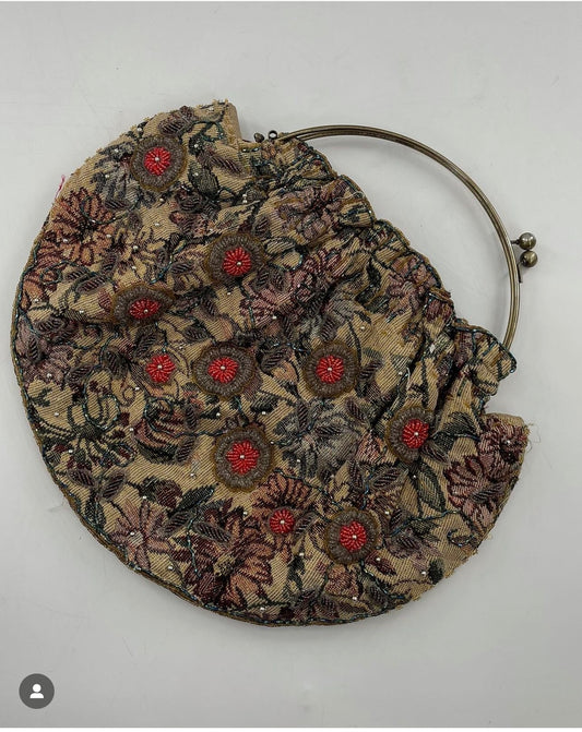 Vintage Deep Green Velvet Purse Covered in Pearls, and Featuring Gold Metal Closure Still Lined in Protective Plastic