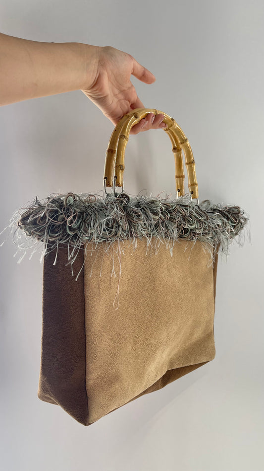 Vintage J Embroidered Fringe Bag Bamboo Handle