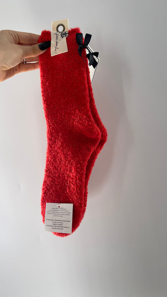 Free People Festive Red Socks with Gold Tinsel and Black Satin Bow Detail