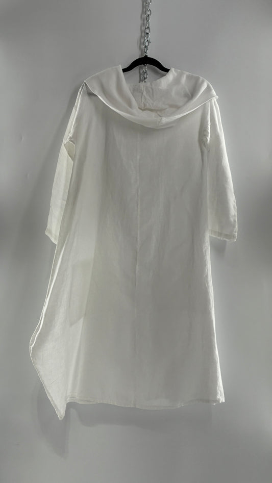 Vintage White 100% Linen Made in Italy Blouse Dress (Large)