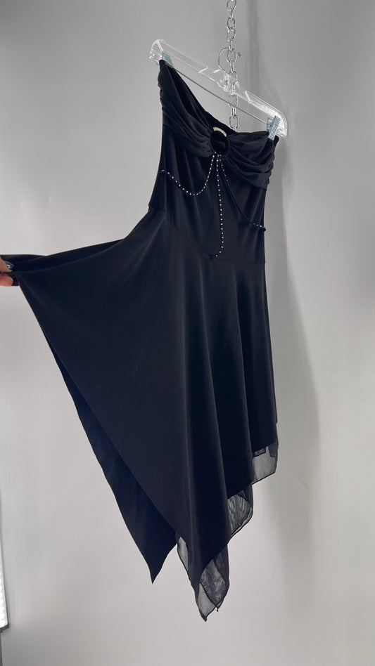 Vintage Joyce Leslie Black Midi Dress with Handkerchief Hem (Medium)