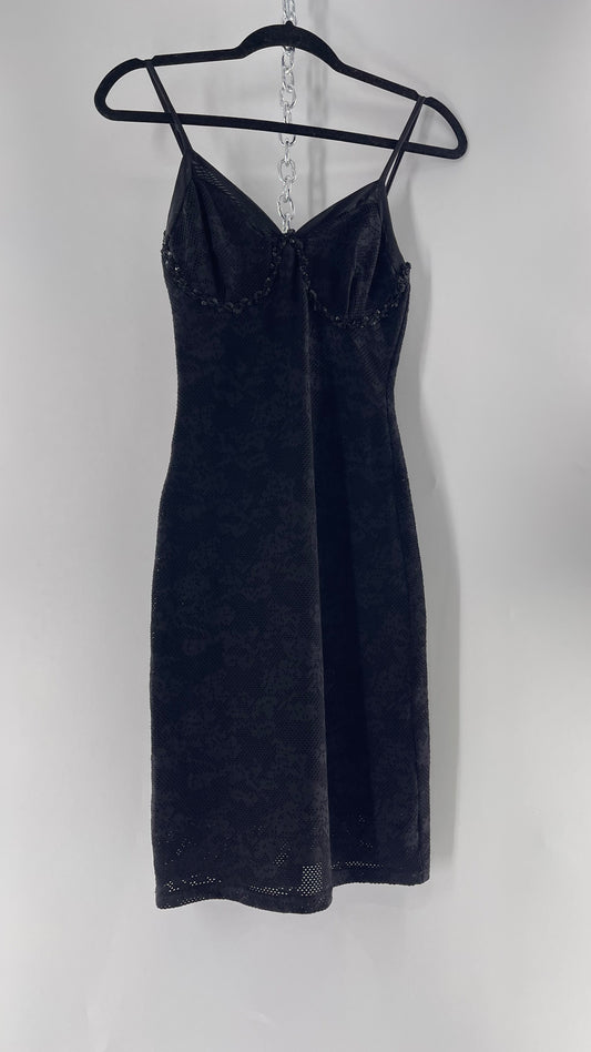 Vintage Black Lace Bodycon Dress with Sequin Underbust Detailing (XS)