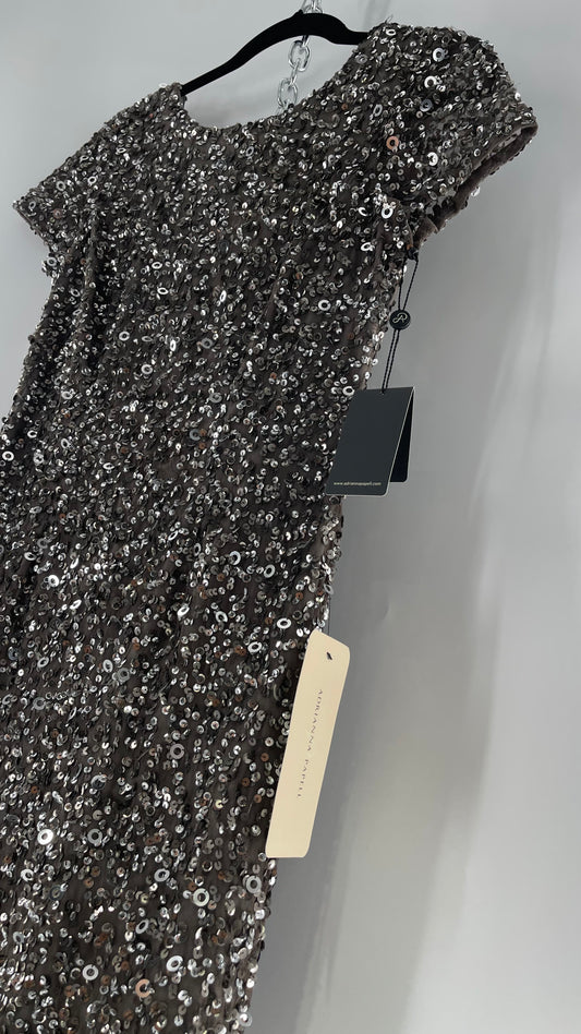 Adriana Papell Grey/Silver Short Sleeve Mini Dress Covered in Beads and Sequins (6)