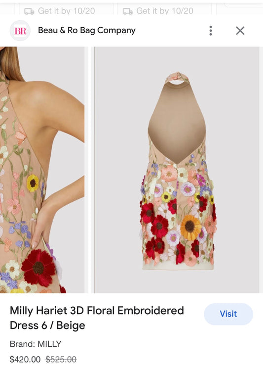 Mesh Backless Mini Dress with Halter Neckline covered in 3D Colorful Embroidered Flower Appliqués (Medium)