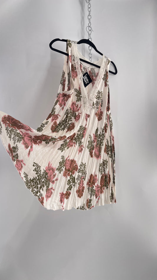 Intimately Free People Dusty Rose Floral Baby Doll Dress with Lace Sleeves (Large)