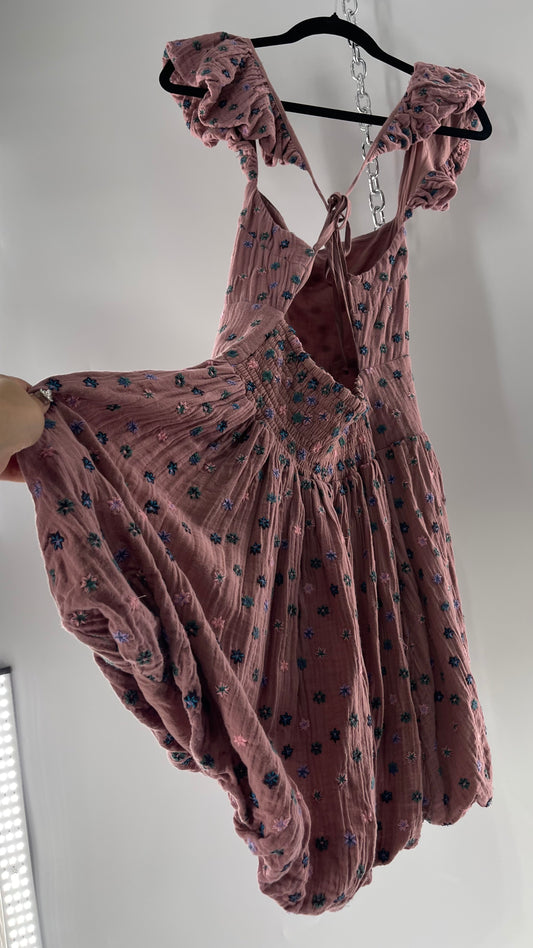 Free People Dusty Pink Embroidered Flowers Backless Mini Dress (Small)