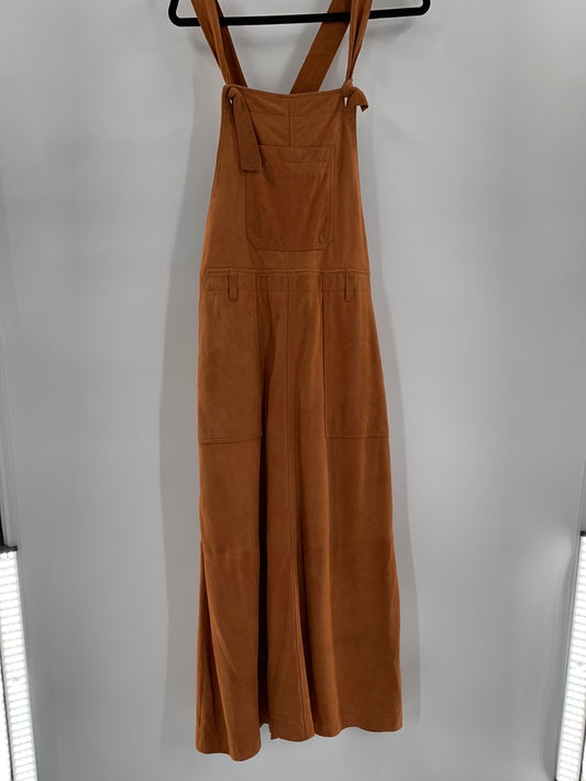 Free People - Genuine Suede Full Length Brown Overall Maxi Dress (Size 10)