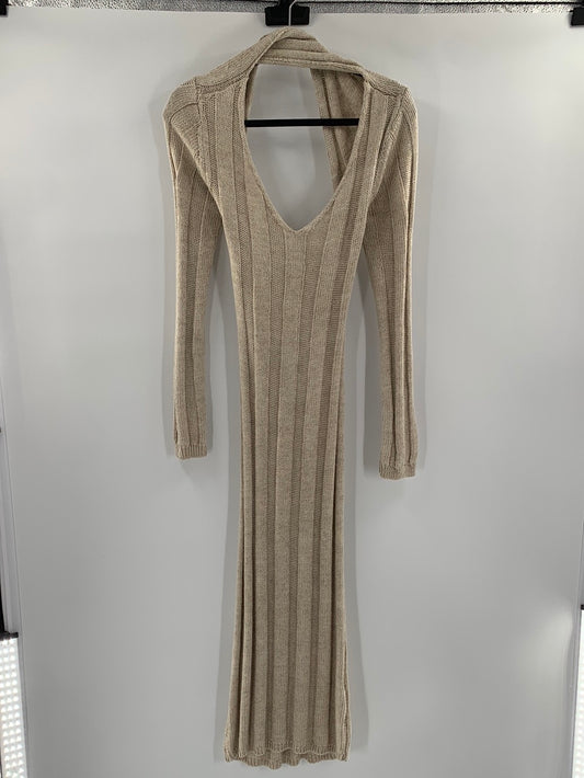 Free People Beach - Beige Knit Ribbed Maxi Dress (Size Medium)