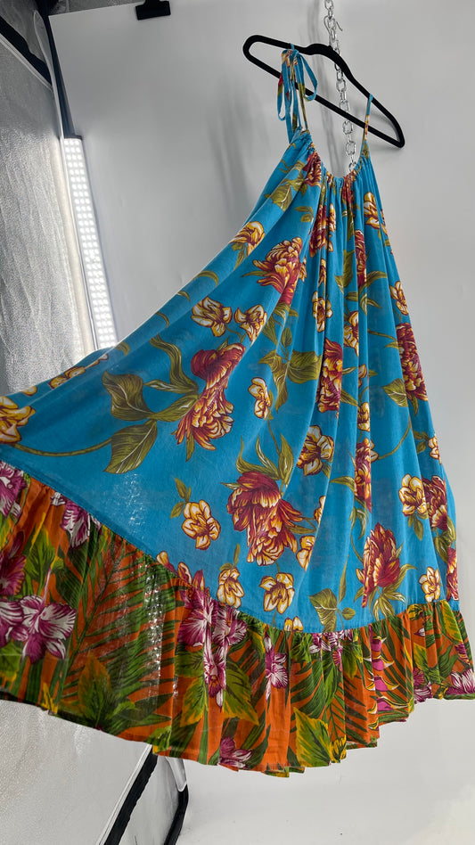 Handemade Brazilian Color Blocked Blue/Orange Floral Maxi (One Size)