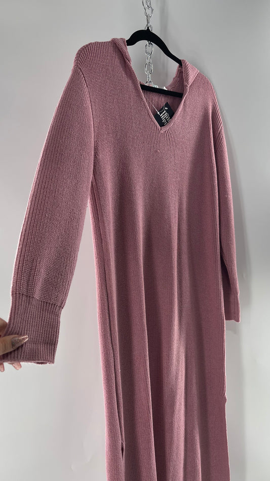Free People Dusty Pink/ Mauve Full Length Knit Hoodie Snuggie Dress (S)