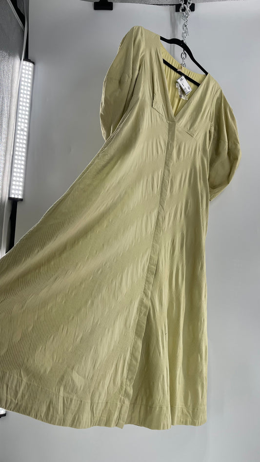 Free People Sage Green Textured Hidden Wooden Button Front Maxi with Back Pleating (Small)