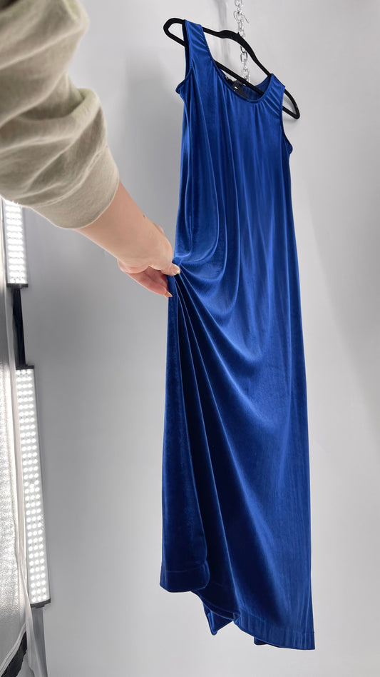 Vintage Carol Anderson Royal Blue Velvet Square Neckline Floor Length Dress (Medium)