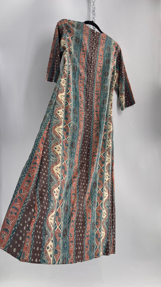 Vintage 1970s Tiffany Loungewear Full Length Brown/Blue Dress (11/12)
