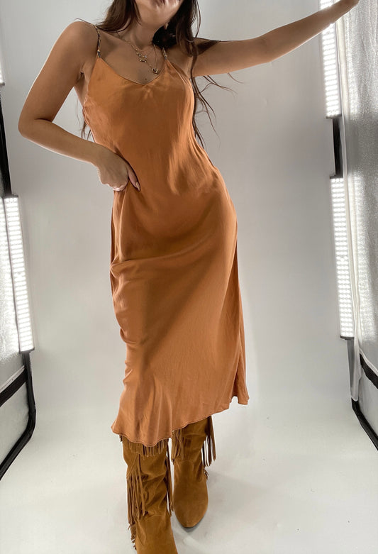 DIANE GILMAN 100% Silk Terracotta Clay Toned Tan Dress (Medium)