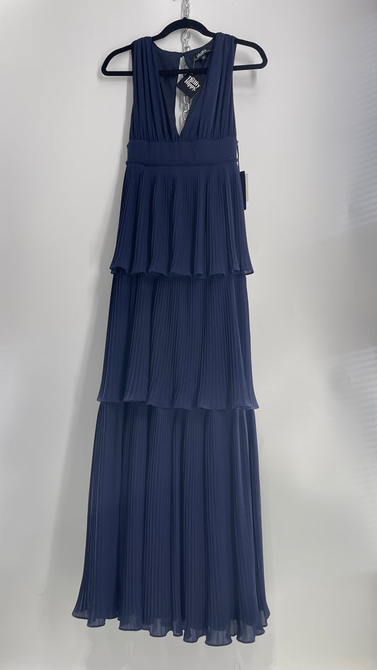 Lulu*s Pleated Navy Blue Floor Length Gown with Three Tiers and Tags Attached (XS)