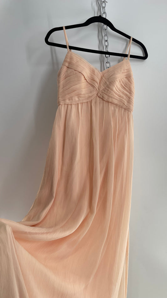 BHLDN Pink Crimped Full Length Gown with Ruched Bust (XS)