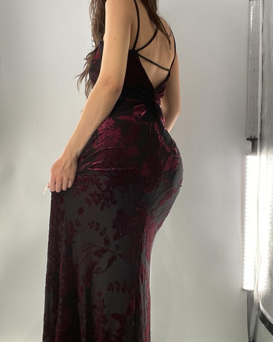 Vintage CDC Burnout Velour Maxi Dress with Open Back and Scrunch Detail (4)